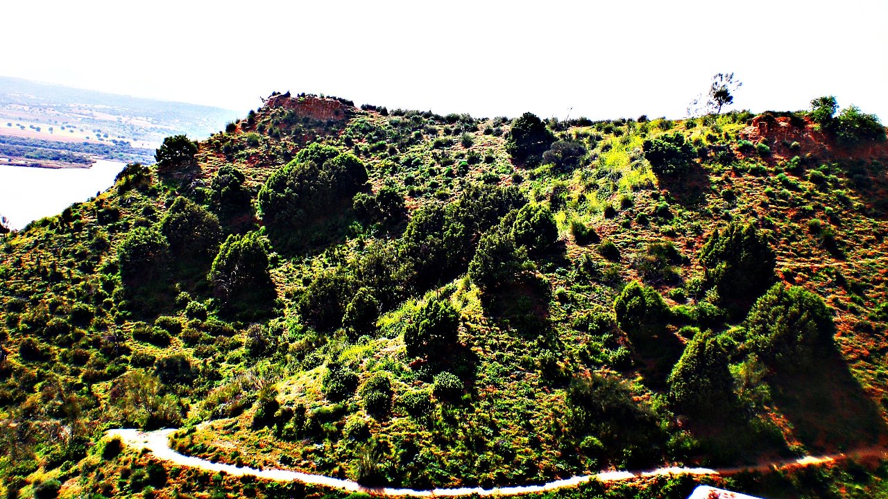 Llegamos sobre las 9:45, dejamos el coche, que esta vez no lo llevaba yo (nos vamos turnando cada ruta una) y nos preparamos para salir. Es una ruta circular de unos 6 km aprox, fácil de seguir y orientarte en el recorrido y además no tiene grandes pendientes y de dificultad fácil, nosotras durante la ruta hicimos un inciso bajando por un sendero pegado a la montaña que te llevaba a los adentro de ésta en los que se observaban unas vistas impresionantes (merece la pena bajar hasta ahí), luego seguimos caminando, durante la ruta hay merenderos, supongo que será porque vaya gente en primavera por allí a comer, pasar el dia..lo malo es que no había ni un árbol dando algo de sombra. Cuando llegamos a la mitad de la ruta más o menos, vimos que no nos quedaba casi nada para terminarla y llevábamos andado solo 1 hora, vimos unos carteles indicando : Puebla de Montalbán hacia la izquierda y dijimos: pues vamos para allá! El pueblo estaba a unos 16 km si no recuerdo mal, asi que tiramos hasta que nos diera la hora, ya que no íbamos preparadas con comida (fallo nuestro) entonces teníamos que regresar para mediodía más o menos. En ese camino había un tramo de tierra pero al poco tiempo te obligaba a meterte por una carretera comarcal por la cual tampoco pasaban muchos coches pero por el olor tan fuerte que salía evaporándose de la carretera, llegamos a la conclusión de que muy recientemente acababan de echar alquitrán..no era muy agradable, pero aún así continuamos pasando por una pequeña aldea con muy pocas casas y una iglesia que no había visto nunca, no conseguimos llegar a la puebla debido al tiempo, por lo que tuvimos que dar la vuelta y seguir por el mismo sitio.